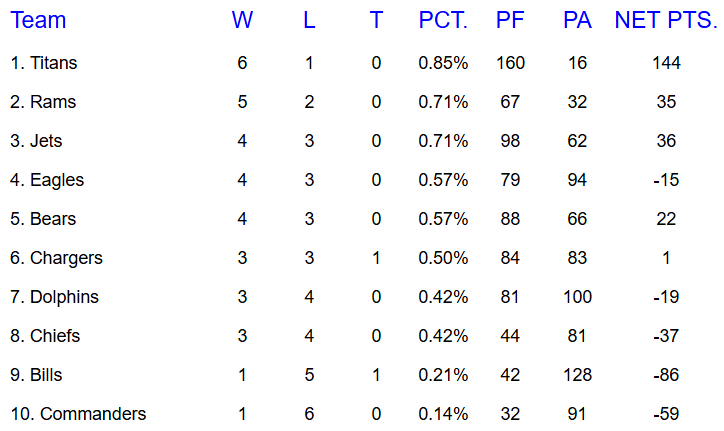 2025 FALL SEASON STANDINGS
